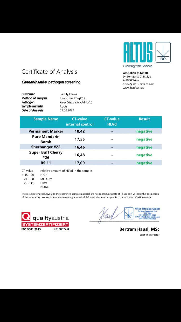 - Volle Kontrolle – nur eine kleine Probe (unter 5g) geht ins Labor, der Rest gehört dir. Wo andere eine Startgebühr und fast die gesamte Ernte verlangen, geben wir euch getestete Top-Genetik zum Selbskostenpreis.